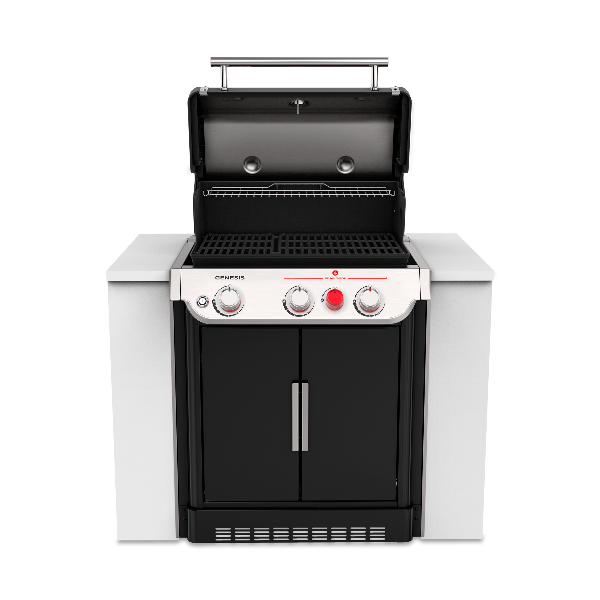 GENESIS 3-burner built-in gas barbecue. The biggest barbecuing innovation in decades, that creates a backyard culinary centrepiece for your outdoor kitchen so you can entertain without limits. It boasts an expansive sear zone, paired with an extendable top cooking grill, ensuring both the main course and sides are all barbecued and served at the same time. The GENESIS built-in gas BBQ can be incorporated into your ideal cabinetry, or be the focal point of your new outdoor kitchen.